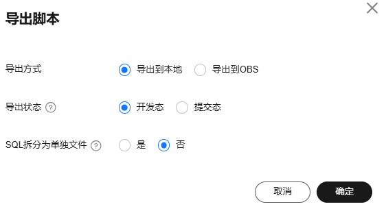 - 在弹出的“导出脚本”界面,选择需要导出的脚本的状态,单击“确定”。