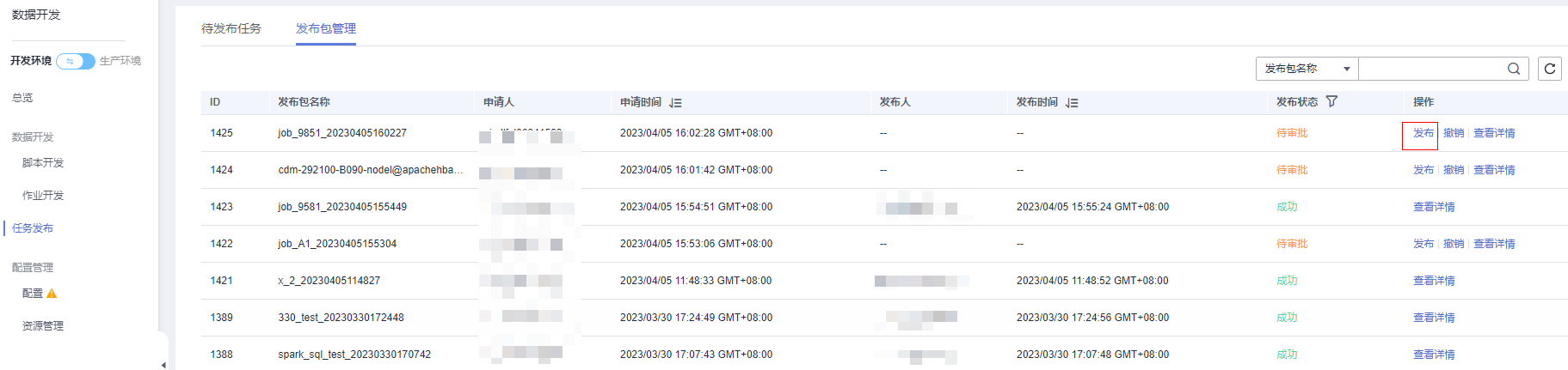 - 确认发布任务没有问题后,请通过“发布”操作,将任务审批通过。