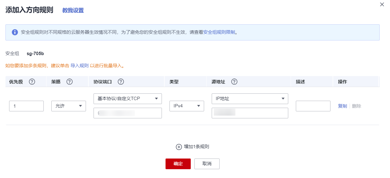 禁止添加100.125.xx.xx、100.64.xx.xx网段,避免与SWR等服务的内网网段重复,导致增强型跨源连接失败。