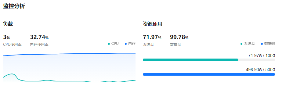 - 单击实例名称,进入实例详情界面,包含监控分析和实例详情两块内容,详情参见如下内容。