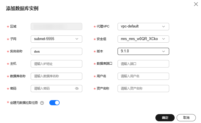 - 根据表6配置相关参数,单击“确定”完成数据库实例的添加。