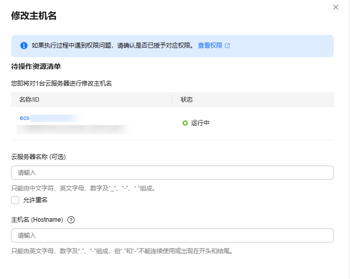 - 仅支持为Linux操作系统ECS修改主机名。