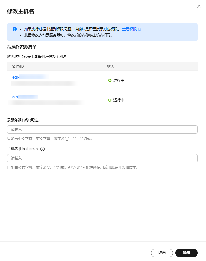- 在ECS列表中,勾选待修改主机名的多台ECS。