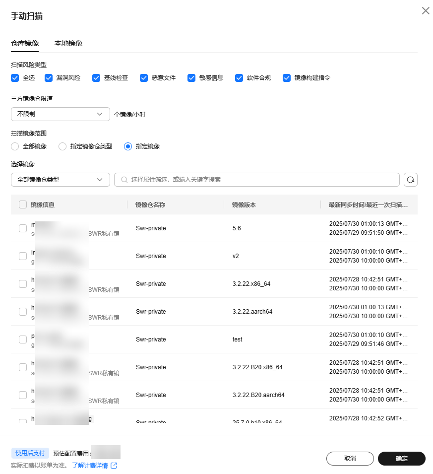 如果您有大量镜像待扫描,但您担心集中扫描镜像时占用过多网络带宽,影响您的业务,您可以单击