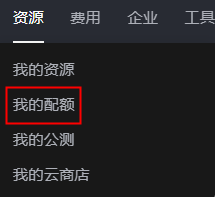- 在页面右上角,选择“资源 > 我的配额”。
