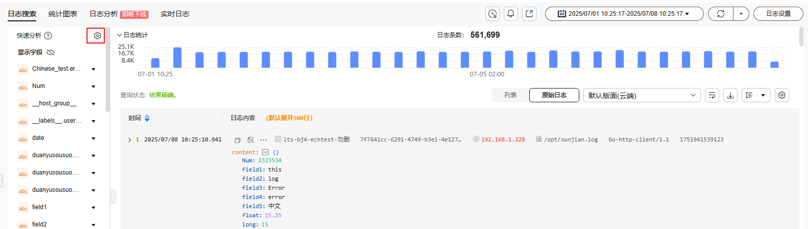 - “日志分析”功能即将下线,建议直接使用管道符方式进行分析,详细请参考日志搜索与分析(管道符方式)。