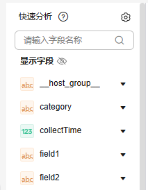 - 在快速分析下方的搜索框输入字段名称,即可显示搜索结果,方便您快速定位目标字段。