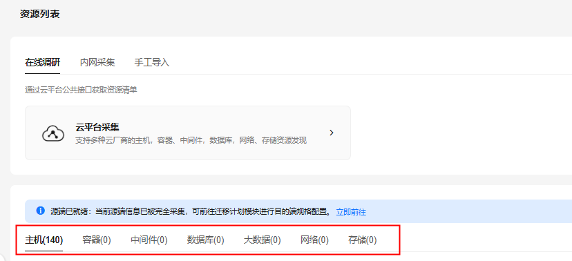 - 阿里云和华为云支持采集的资源类型包括:主机、容器、中间件、数据库、大数据、网络和存储。