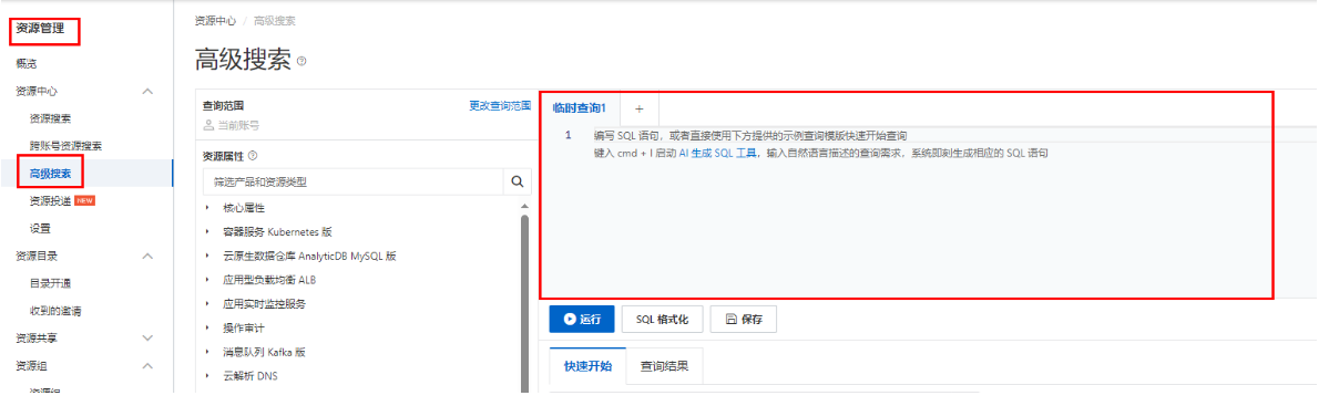 - 在左侧导航栏,选择资源管理 > 高级搜索。