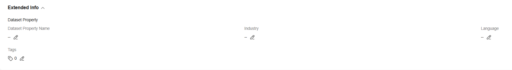 - 在“基本信息”页签,可以查看数据详情、数据来源以及扩展信息。在扩展信息内,可以根据用户需求设置数据集属性,包括数据集属性名称、行业、语言、自定义标签,如图3。