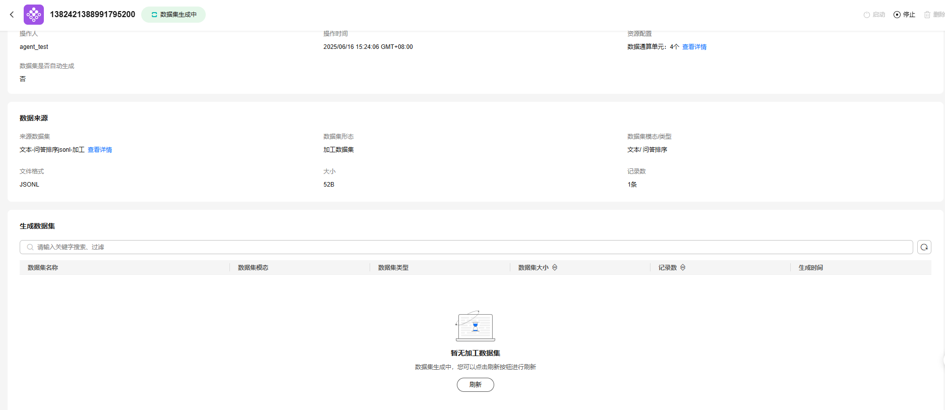 - 当任务无生成数据集且处理生成数据集中状态时,提供刷新按钮。