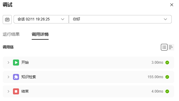 Agent开发平台支持对整个工作流进行试运行,也支持对工作流的单个节点进行调试。