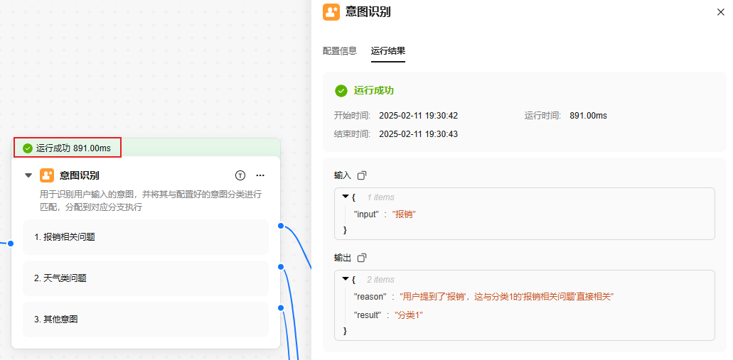 - 可在“运行结果”页面查看当前节点的运行结果。