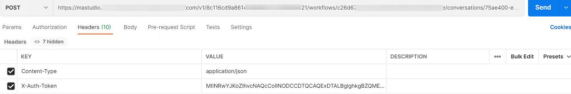 - 在Postman中新建POST请求,并填入工作流的调用路径,详见获取调用路径。