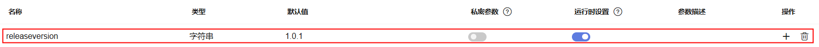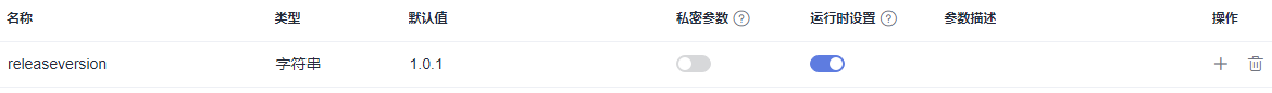- 单击“参数设置”,在“参数设置”页面添加releaseversion参数并设置好默认值,打开“运行时设置”。