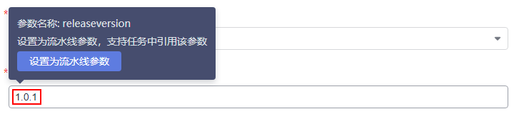 - 鼠标移至参数名称,可以快速将该参数设置为流水线参数并能直接引用该参数。