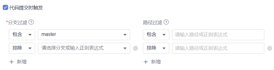 - 路径过滤:可以通过设置包含或排除路径,来监听触发事件所在的变更文件路径。