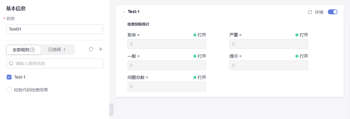 ,可打开/关闭规则,关闭后,该规则在应用到流水线准出条件中会自动关闭并不做拦截校验。