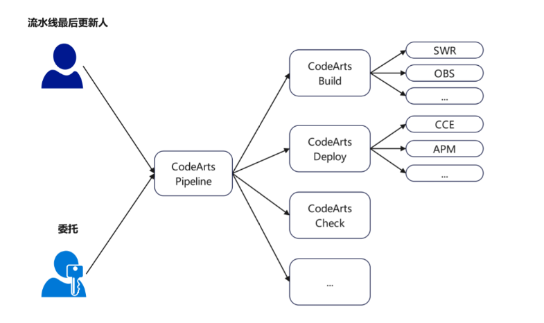 - 未配置委托:使用流水线最后更新人的身份及权限。
