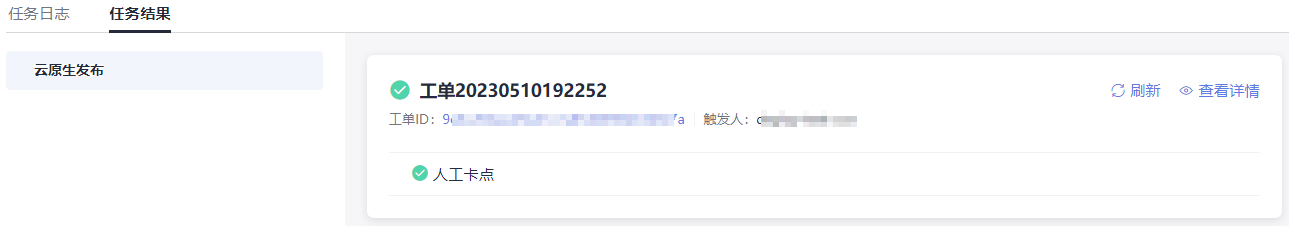 单击工单ID或“查看详情”可进入发布管理工单详情页面,工单详情页介绍请参见查看发布管理发布结果。