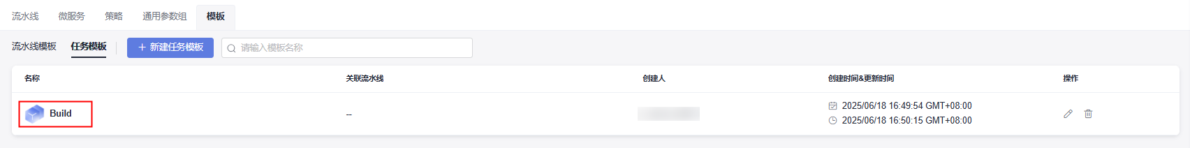- 配置完任务,单击“确定”,跳转至模板页面,完成任务模板的新建。
