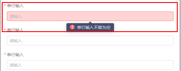 校验信息,是一个对象,包含requiredMessage、regex、regexMessage三个属性。 { requiredMessage: '', // 必填项提示语 regex: '', // 正则校验 regexMessage: '' // 正则校验失败的提示语 } |