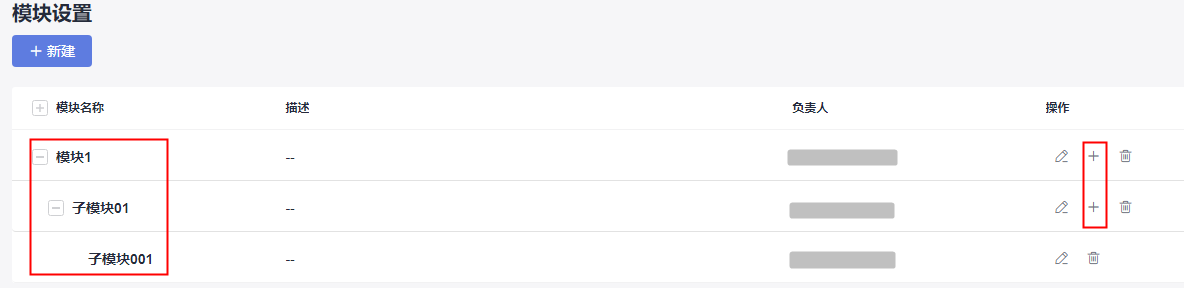 ,可以添加子模块,最多支持三级,如“模块1”、“子模块01”、“子模块001”。