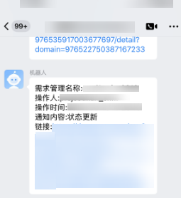 配置完成后,当通知事件发生时,企业微信将通知发送至企业微信的聊天群。