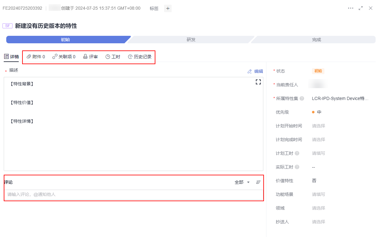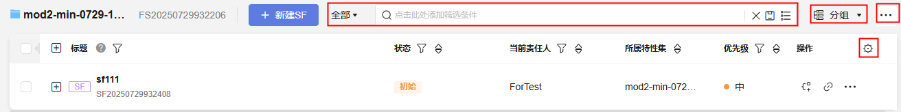 完成新建系统特性操作后,您可以在项目内对工作项做如下的管理动作。