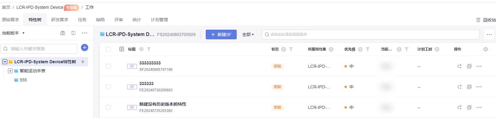 - 单击“确定”,系统会自动跳转到特性树列表页,页面右上角给出“新建SF成功”的提示。