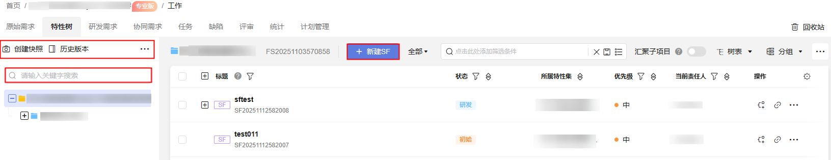 完成在IPD独立软件类项目中新建特性树操作后,您可以在项目内对特性树做如下的管理动作。