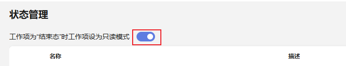 - (可选)若需要设置工作项在结束态时,不允许用户编辑,如下图所示,可开启“工作项为结束态时工作项设为只读模式”开关。