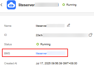 - 在Lite Server服务器详情页,通过裸金属服务器地址或弹性云服务器地址跳转到对应控制台详情页。