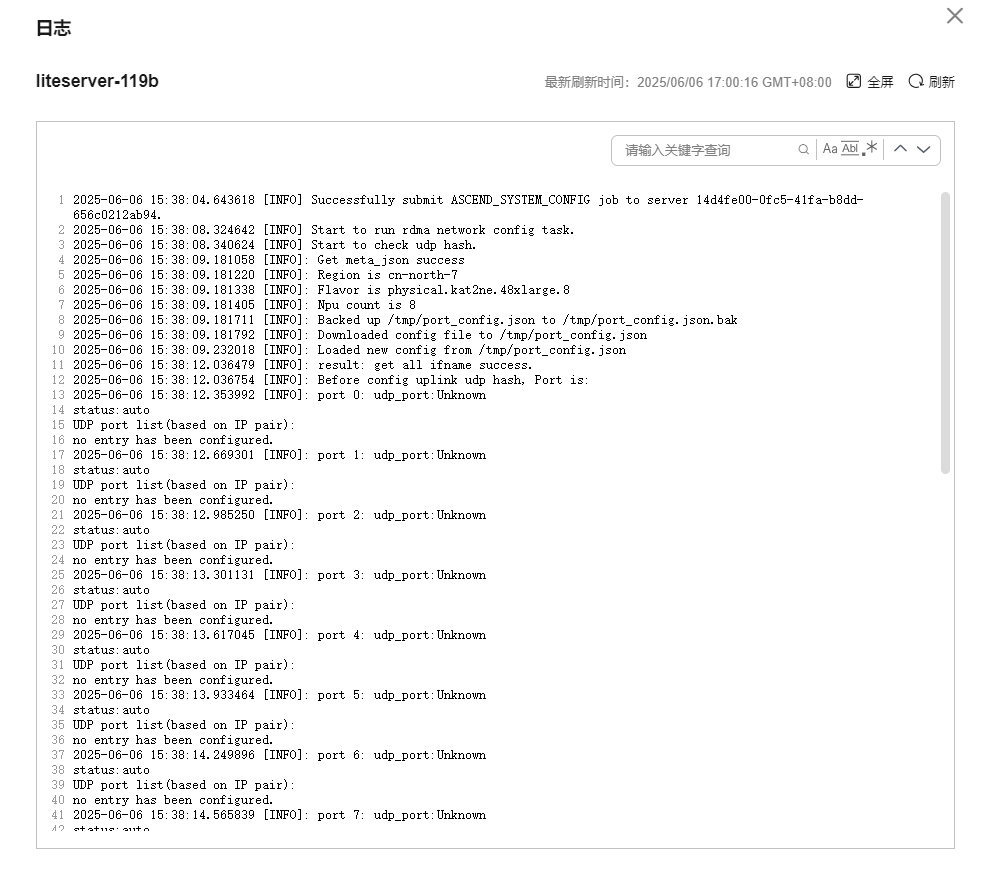 Lite Server任务中心提供一键式的系统配置能力,用户可自助快捷地在Lite Server产品页面上完成参数面网络配置诉求。通过优化服务器参数(如RoCE网络上行端口、参数面网络IP)等,以满足训练/推理场景基本需求,并提升服务器性能,同时可批量在多台服务器上均可并行,大幅度提升效率。