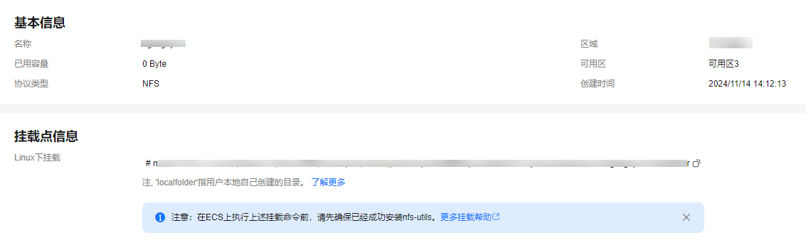 - 单击通用文件系统名称,进入“基本信息”页面,可查看更多的通用文件系统信息,如图1所示。