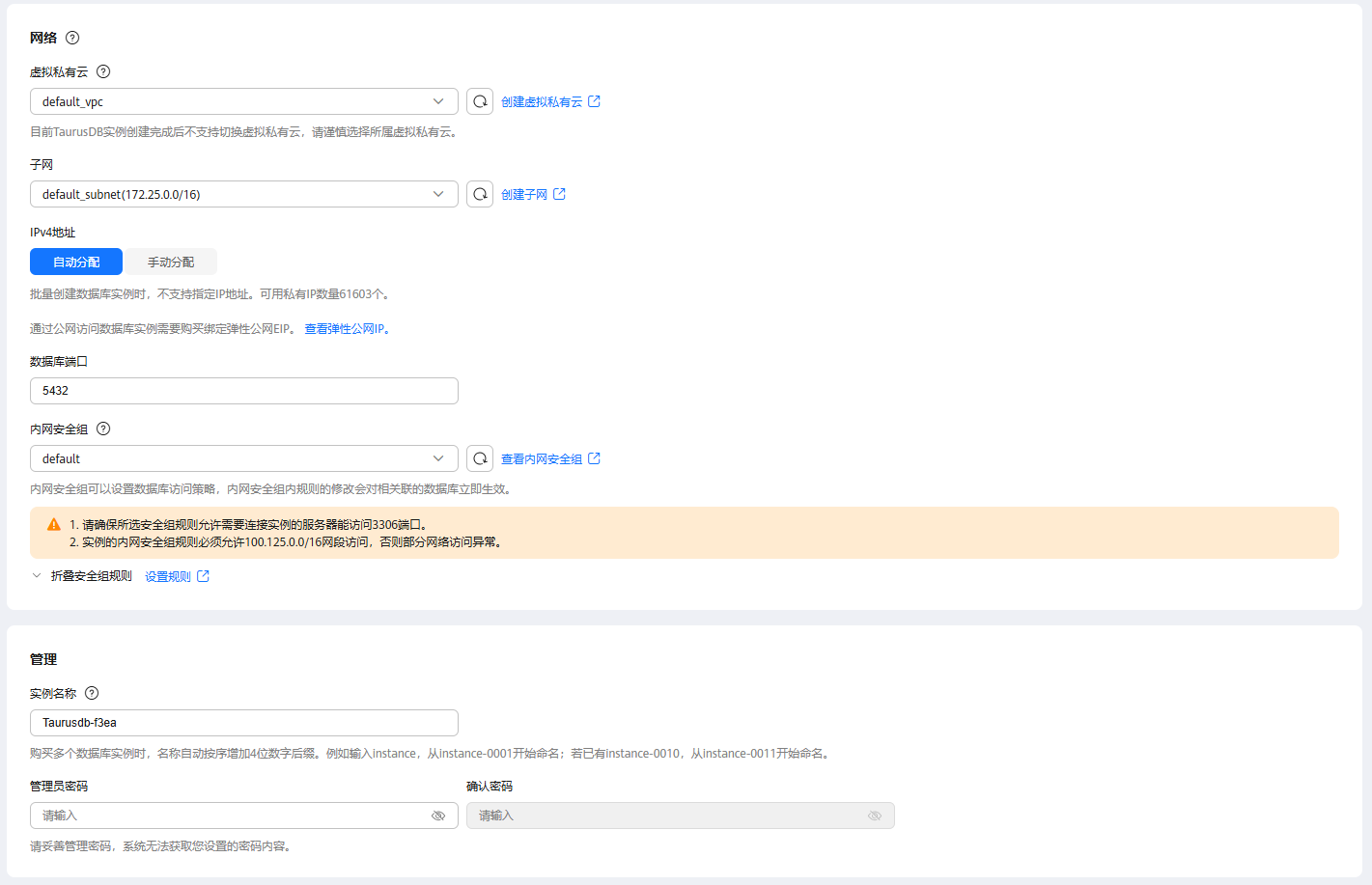 须知:目前TaurusDB for PostgreSQL实例创建完成后不支持切换虚拟私有云,请谨慎选择所属虚拟私有云。
