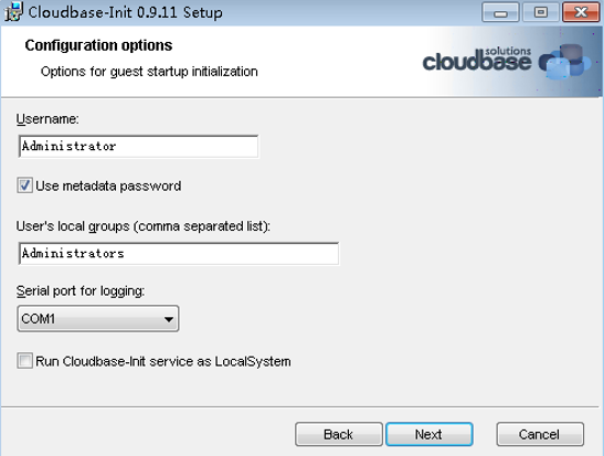 - 进入软件包存储路径“C:\software”,打开Cloudbase-Init工具安装包按照提示进行安装。