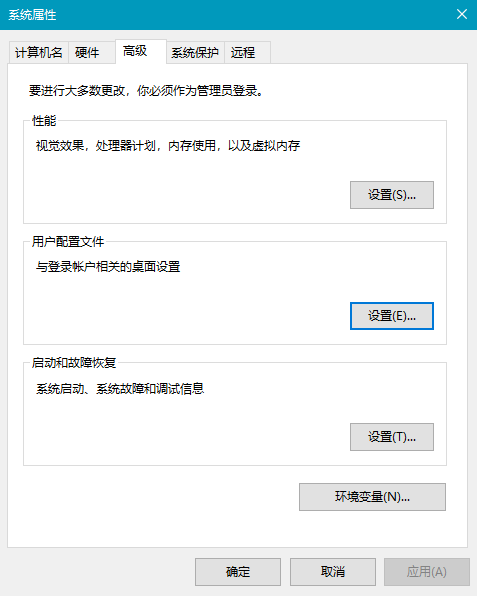 - 在“高级”页签,在“用户配置文件”区域,单击“设置”。