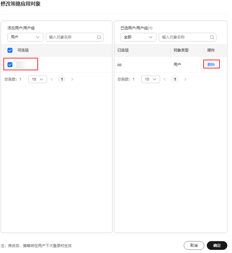 当用户工作岗位变更,需要调整用户的网络接入方式,管理员可通过修改策略对象的方式进行调整。