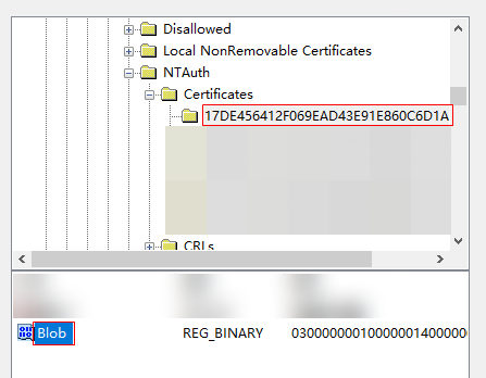 - 在“新建注册表属性”页面选择注册表路径,路径为“HKEY_LOCAL_MACHINE\SOFTWARE\Microsoft\EnterpriseCertificates\NTAuth\Certificates\”