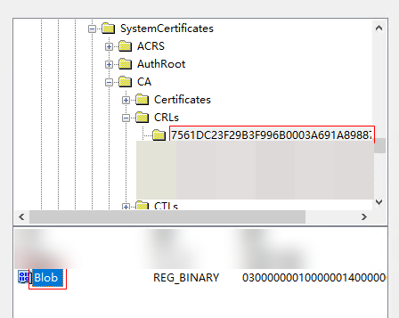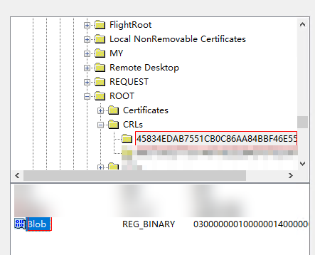- 在“新建注册表属性”页面选择注册表路径,路径为“HKEY_LOCAL_MACHINE\SOFTWARE\Microsoft\SystemCertificates\ROOT\CRLs\”