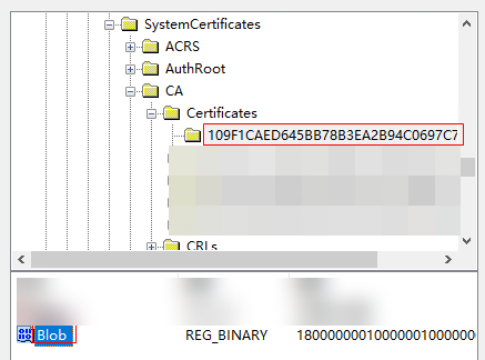 - 在“新建注册表属性”页面选择注册表路径,路径为“HKEY_LOCAL_MACHINE\SOFTWARE\Microsoft\SystemCertificates\CA\Certificates\”
