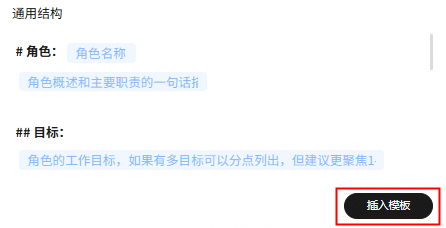 角色指令模板”图标。 - 在提示词编辑框中按照模板填写提示词。