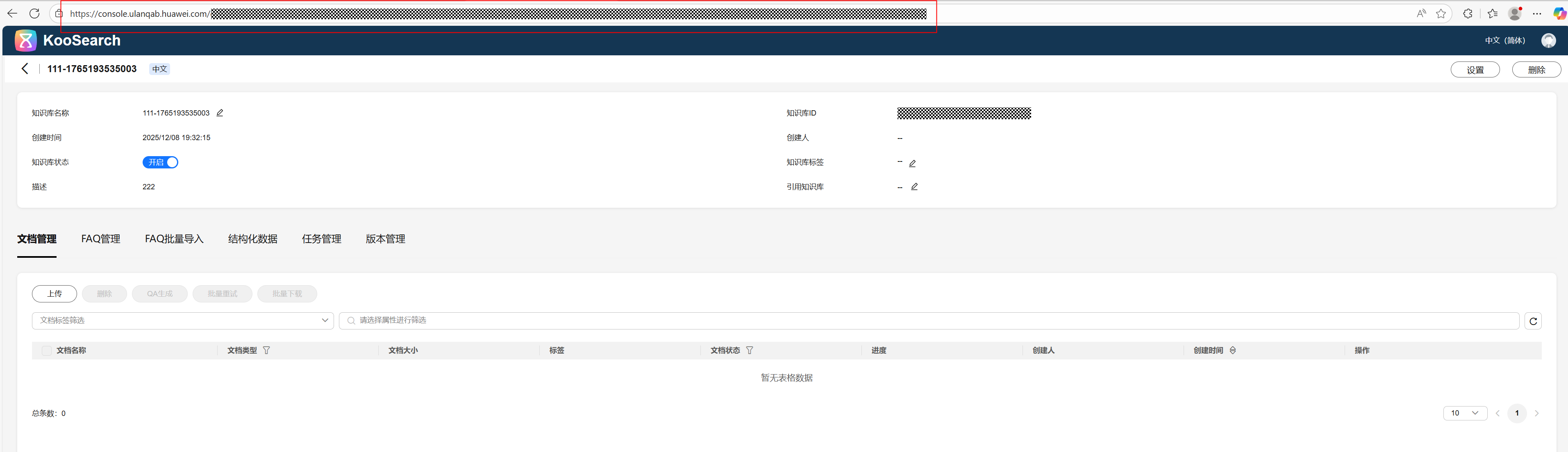 - 登录KooSearch主页,单击需要接入的知识库,进入KooSearch知识库详情页面。