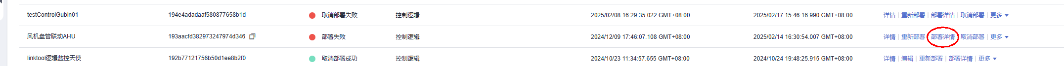 - 如果场景部署失败了,可以单击后面的“部署详情”去查看对应哪个任务部署失败导致的。