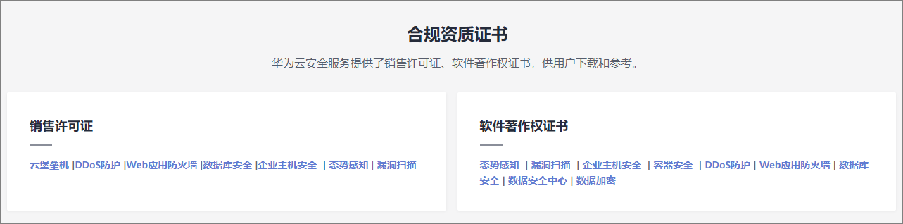 另外,华为云还提供了以下销售许可证及软件著作权证书,供用户下载和参考。具体请查看合规资质证书。