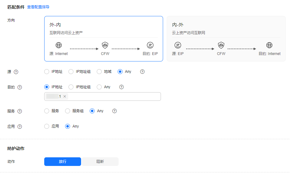 步骤四:添加防护规则——放行访问指定EIP的入方向流量