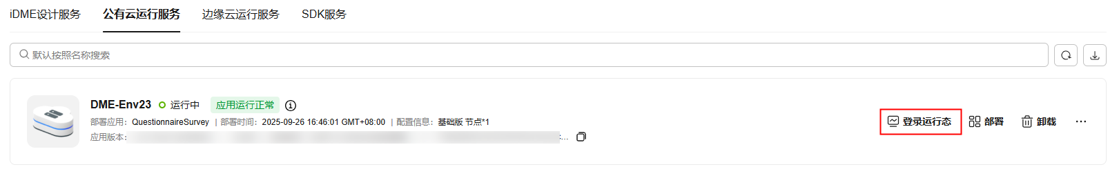 - 在“公有云运行服务”列表中,找到已部署至基础版数据建模引擎的应用,单击“登录运行态”,即可登录应用运行态。