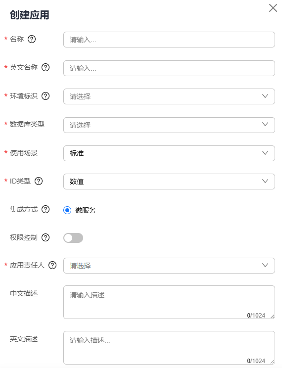 - 单击“创建应用”,根据页面提示,配置如下信息。