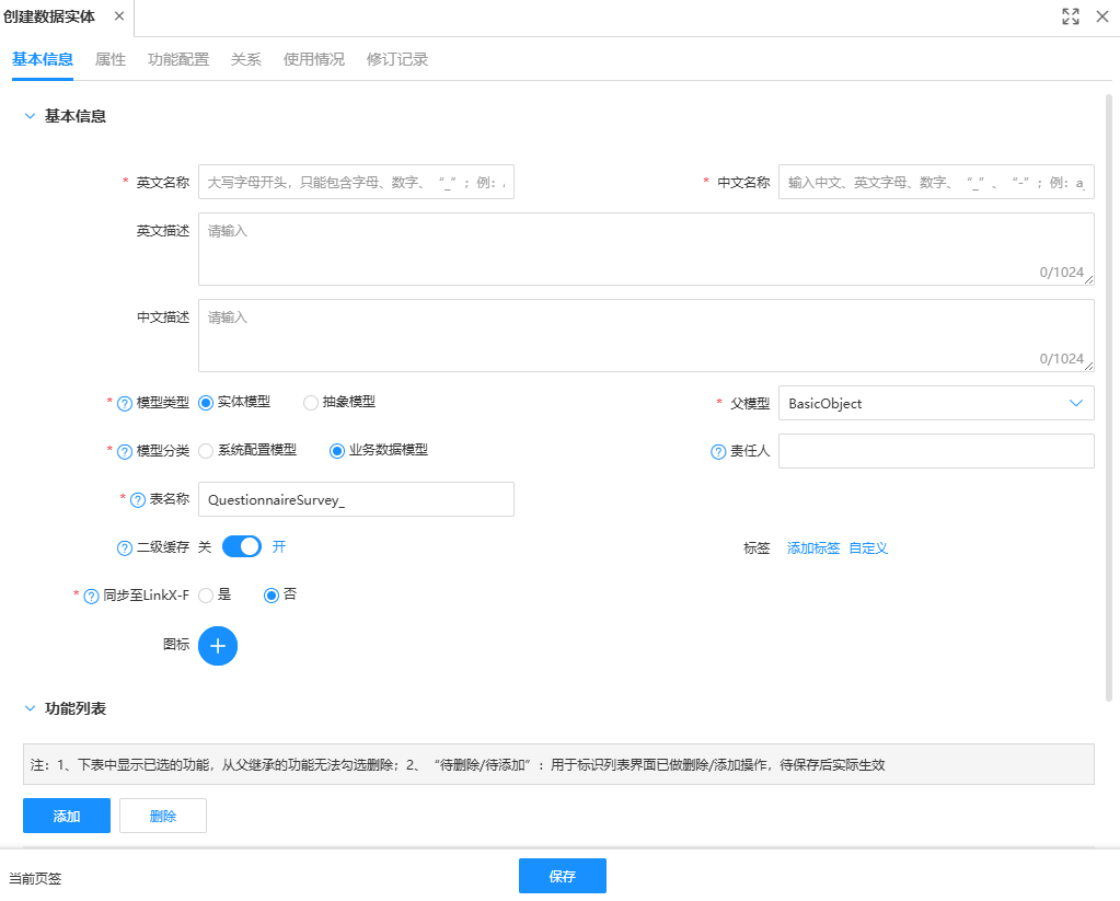 - 在展开的“创建数据实体”页面,配置如下基本信息,单击“保存”。